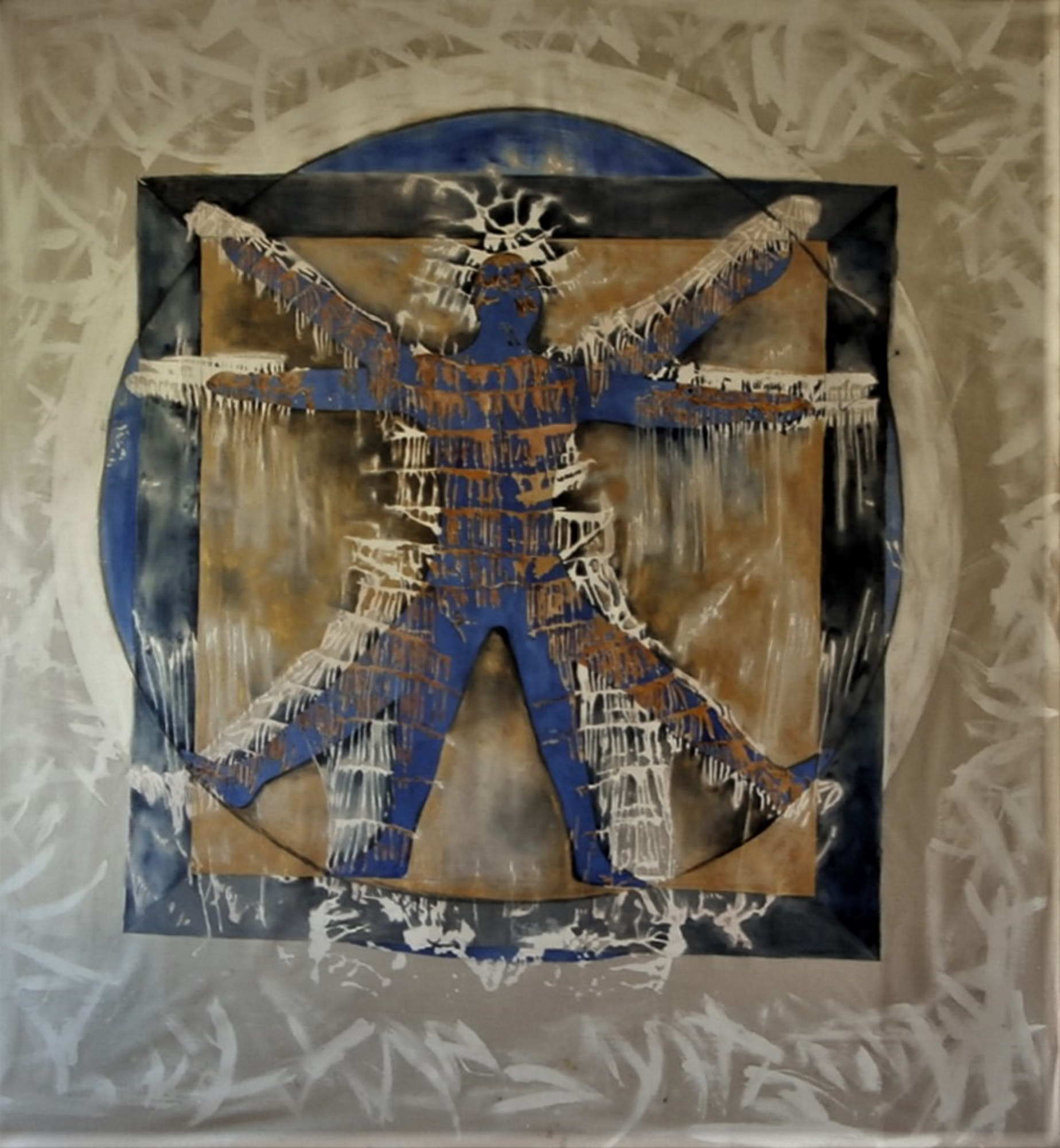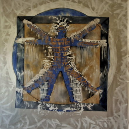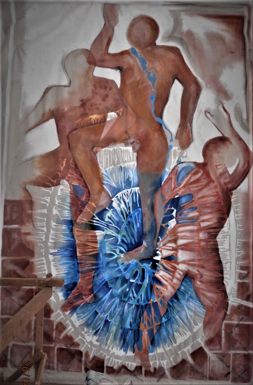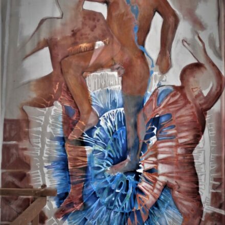 La lutte de l’homme et de la gravitĂ©. 150cm x 260cm; acrylique sur toile.