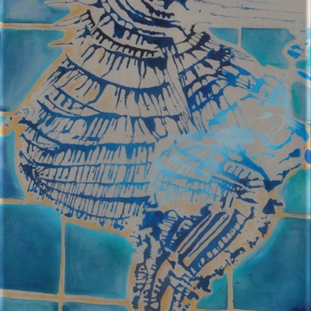Envol dans les eaux claires. 120cm x 260cm; acrylique sur toile.