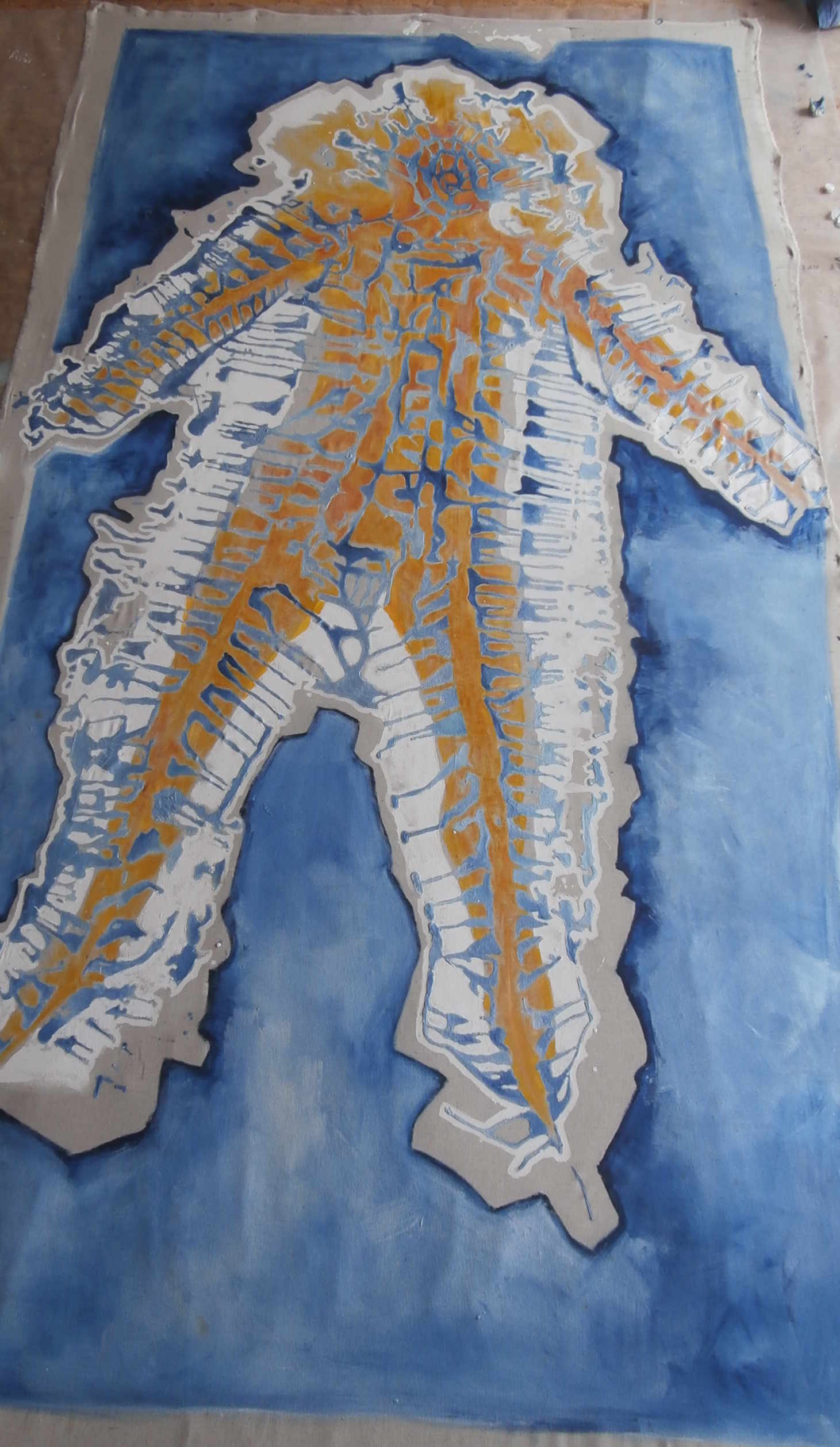 Homme complet ou homme face/dos : coupe â silhouette â volume â plan. 290cm x 400cm, acrylique. Mars 2020 - Le Moulin Trumeau â Vijon